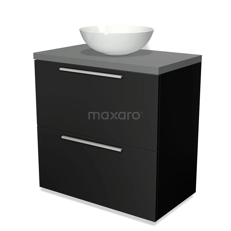 Modulo Plato Badmöbel mit Aufsatzwaschbecken | 80 cm Matt Schwarz Flach front Mittelgrau blatt 2 hohe Schubladen übereinanderliegend
