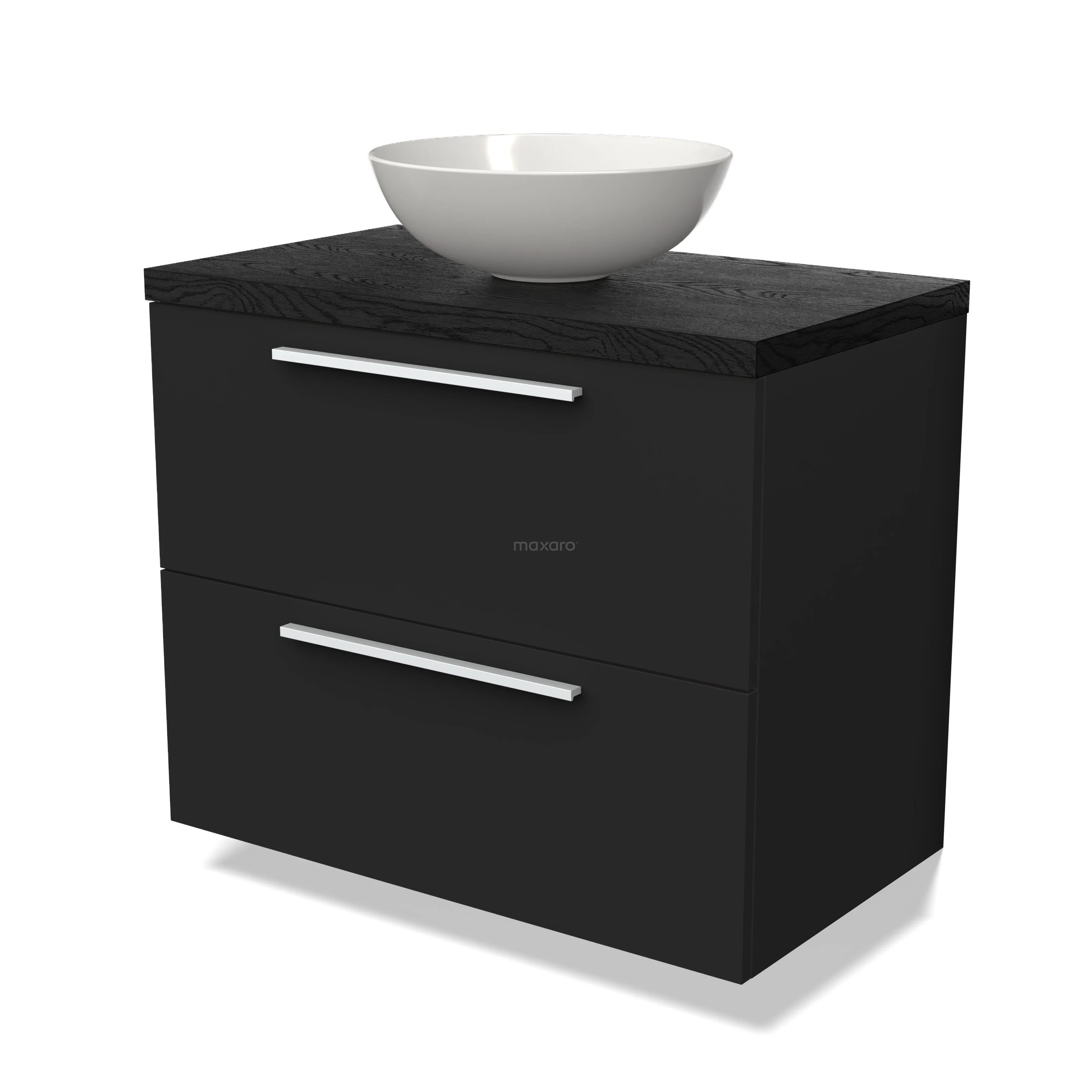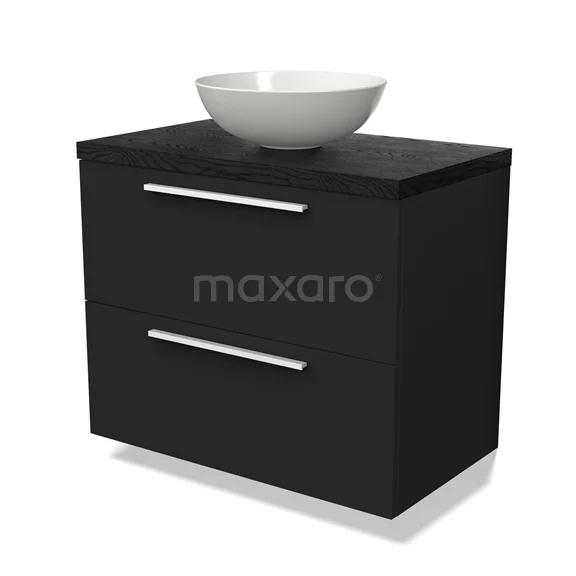 Modulo Plato Badmöbel mit Aufsatzwaschbecken | 80 cm Matt Schwarz Flach front Schwarze Eiche blatt 2 übereinanderliegende Schubladen