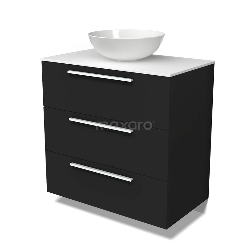 Modulo Plato Badmöbel mit Aufsatzwaschbecken | 80 cm Matt Schwarz Flach front Solid Surface blatt 3 Schubladen