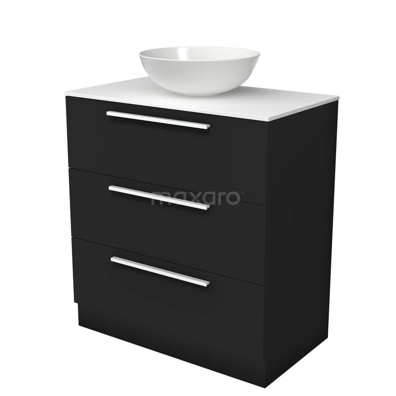 Modulo Plato Badmöbel mit Aufsatzwaschbecken | 80 cm Matt Schwarz Flach front Solid Surface blatt 3 stehende Schubladen
