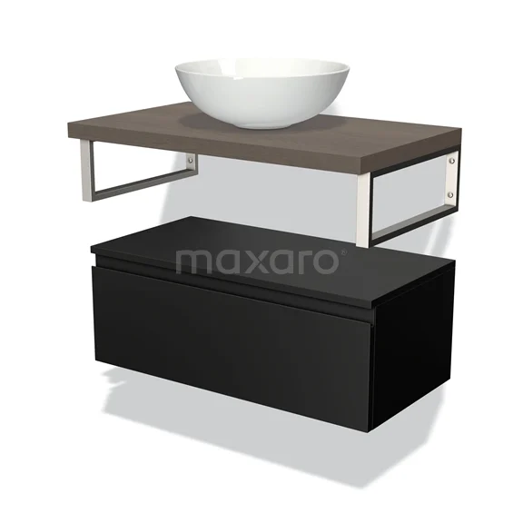 Modulo Plato Badmöbel mit Aufsatzwaschbecken | 80 cm Matt Schwarz Grifflos front Dunkelbraune Eiche blatt Tief hängend