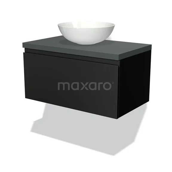 Modulo Plato Badmöbel mit Aufsatzwaschbecken | 80 cm Matt Schwarz Grifflos front Dunkelgrau blatt 1 Schublade