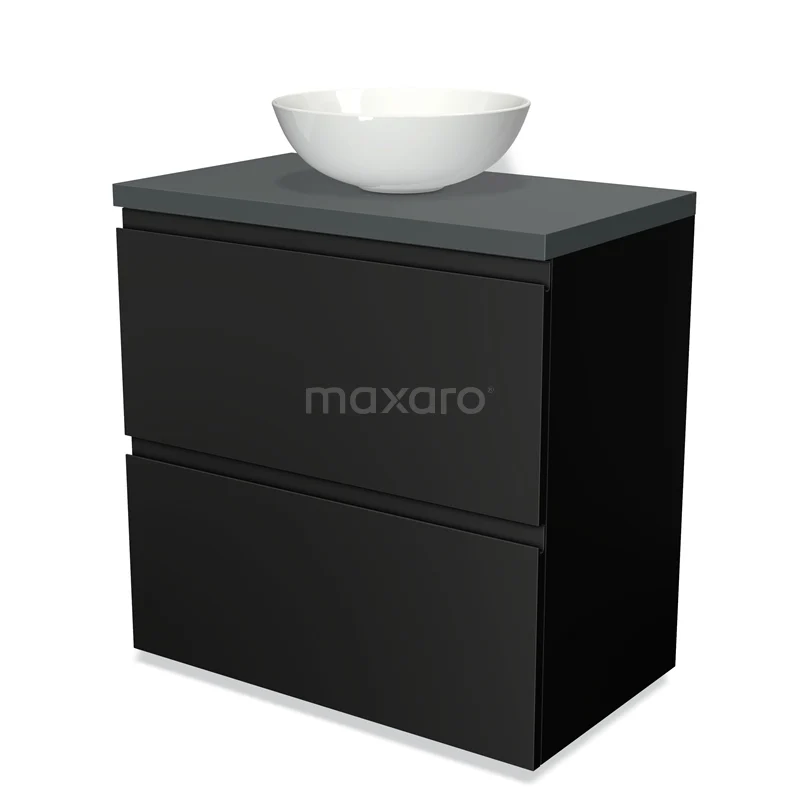 Modulo Plato Badmöbel mit Aufsatzwaschbecken | 80 cm Matt Schwarz Grifflos front Dunkelgrau blatt 2 hohe Schubladen übereinanderliegend