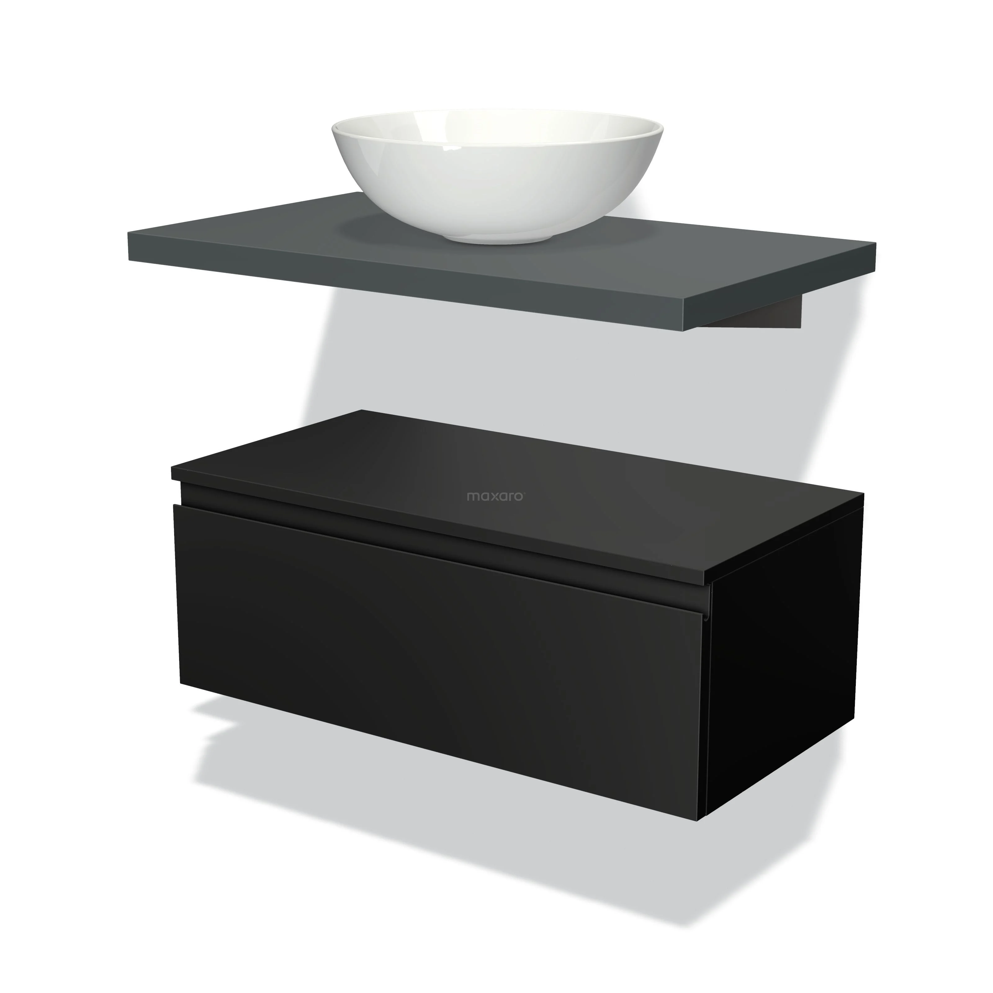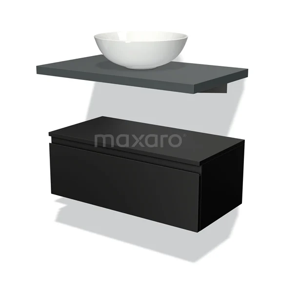 Modulo Plato Badmöbel mit Aufsatzwaschbecken | 80 cm Matt Schwarz Grifflos front Dunkelgrau blatt Tief hängend