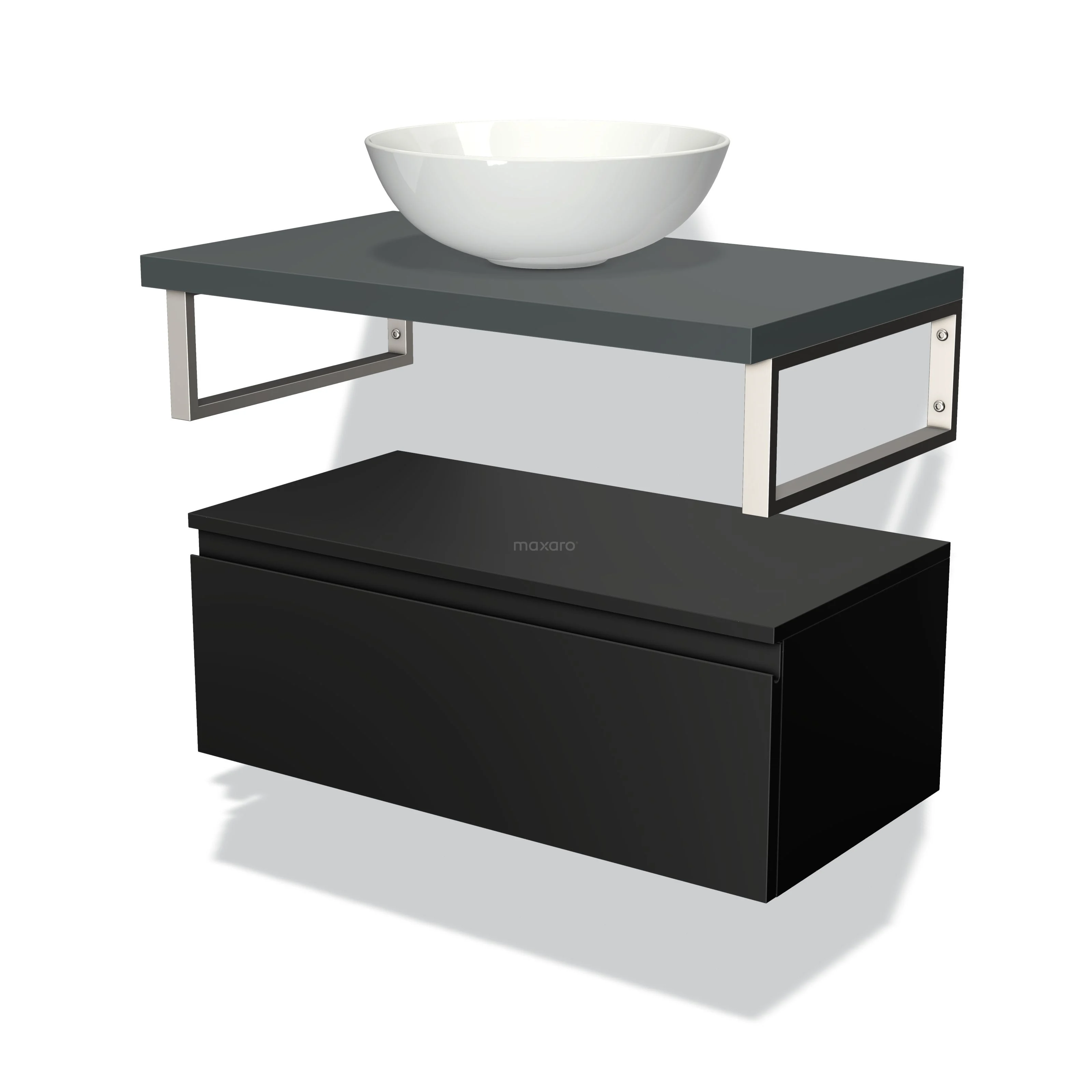 Modulo Plato Badmöbel mit Aufsatzwaschbecken | 80 cm Matt Schwarz Grifflos front Dunkelgrau blatt Tief hängend