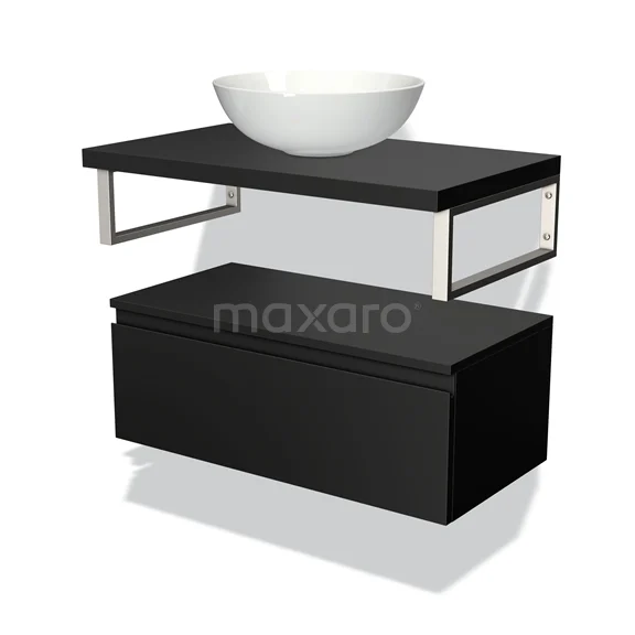 Modulo Plato Badmöbel mit Aufsatzwaschbecken | 80 cm Matt Schwarz Grifflos front Matt Schwarz blatt Tief hängend