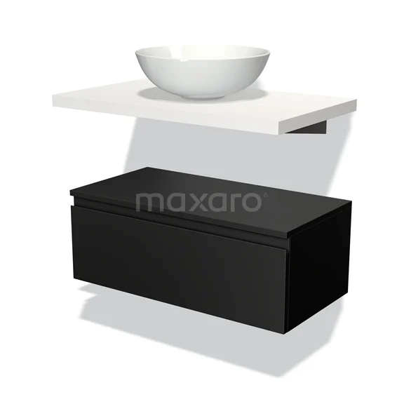Modulo Plato Badmöbel mit Aufsatzwaschbecken | 80 cm Matt Schwarz Grifflos front Matt Weiß blatt Tief hängend