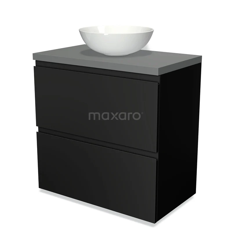 Modulo Plato Badmöbel mit Aufsatzwaschbecken | 80 cm Matt Schwarz Grifflos front Mittelgrau blatt 2 hohe Schubladen übereinanderliegend
