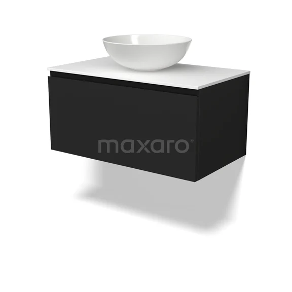 Modulo Plato Badmöbel mit Aufsatzwaschbecken | 80 cm Matt Schwarz Grifflos front Solid Surface blatt 1 Schublade