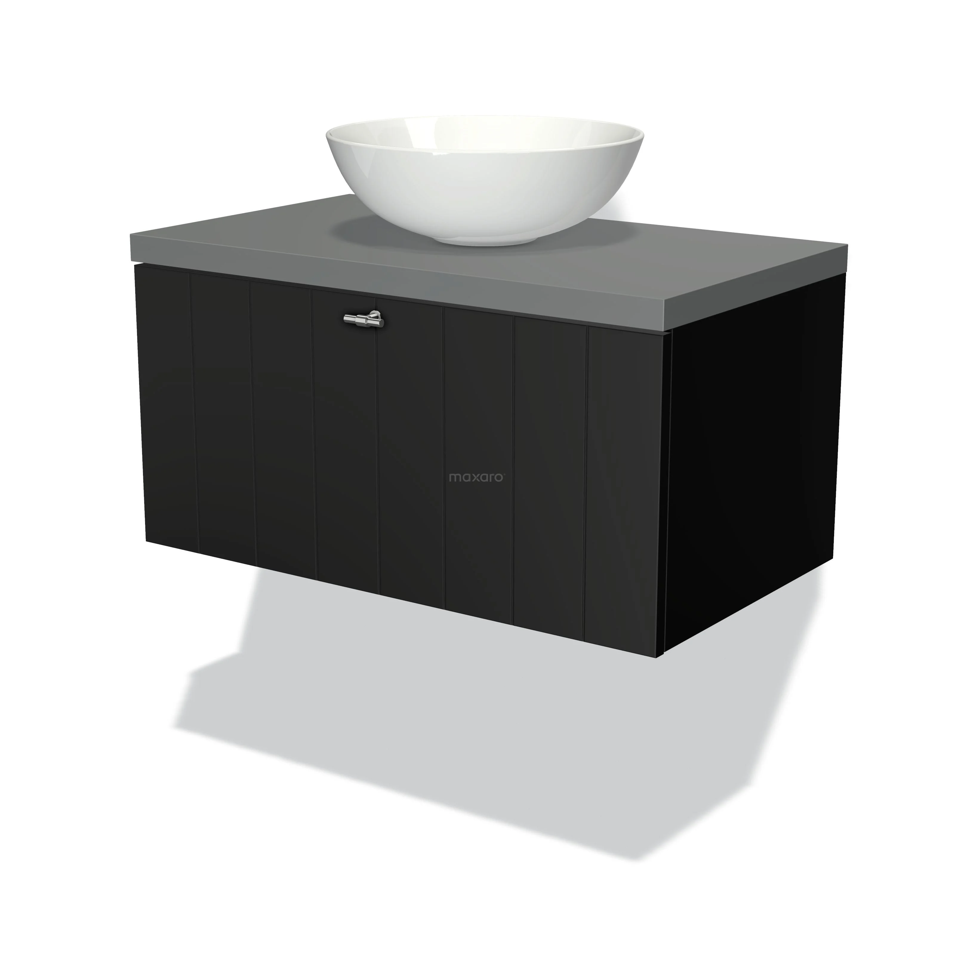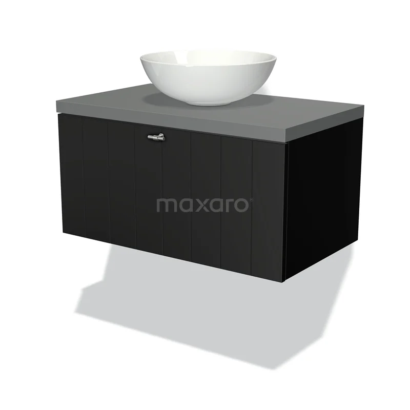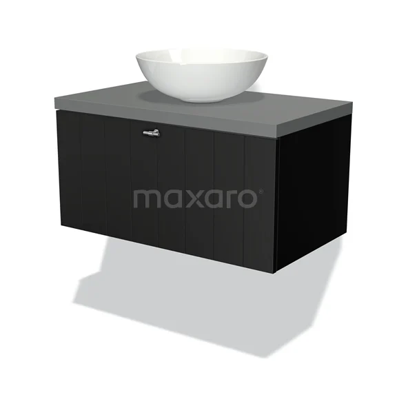 Modulo Plato Badmöbel mit Aufsatzwaschbecken | 80 cm Matt Schwarz Lamelle front Mittelgrau blatt 1 Schublade