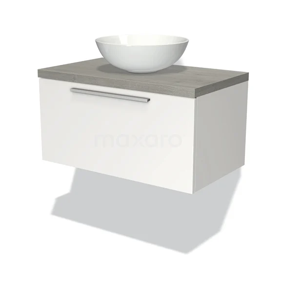 Modulo Plato Badmöbel mit Aufsatzwaschbecken | 80 cm Matt Weiß Flach front Graue Eiche blatt 1 Schublade