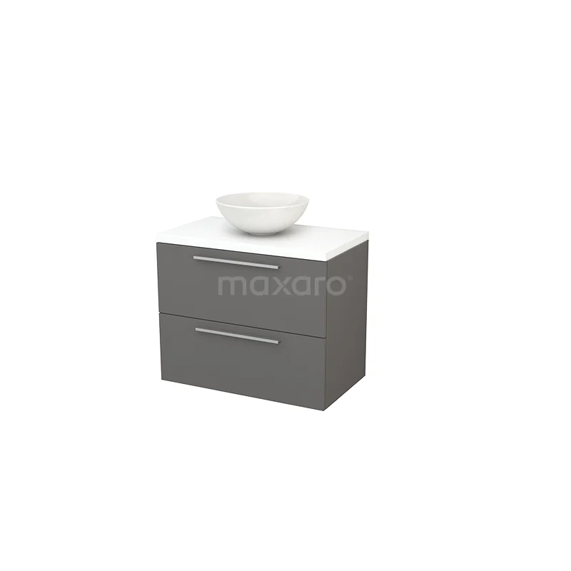 Modulo+ Plato Badmöbel mit Aufsatzwaschbecken | 80 cm Matt Weiß Flach front Matt Weiß blatt 2 übereinanderliegende Schubladen