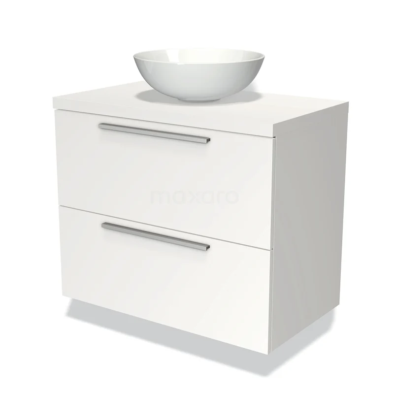 Modulo Plato Badmöbel mit Aufsatzwaschbecken | 80 cm Matt Weiß Flach front Matt Weiß blatt 2 übereinanderliegende Schubladen
