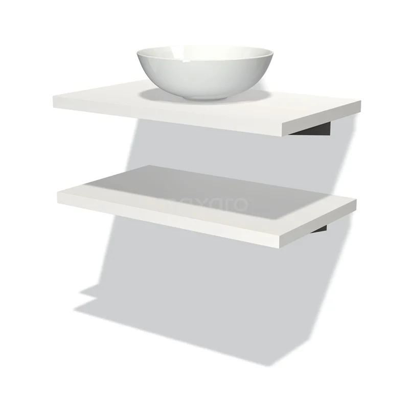 Modulo Plato Badmöbel mit Aufsatzwaschbecken | 80 cm Matt Weiß front Matt Weiß blatt 2 Waschtischplatten