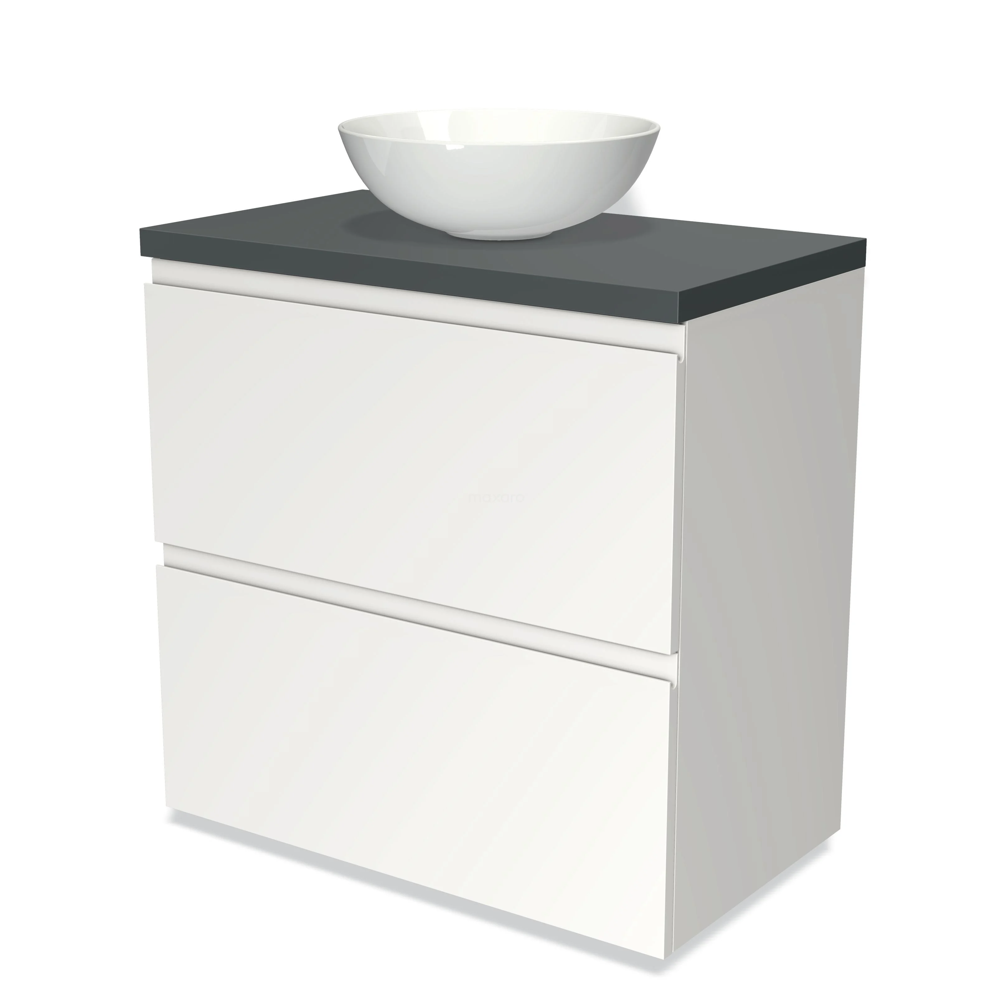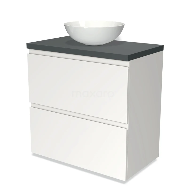 Modulo Plato Badmöbel mit Aufsatzwaschbecken | 80 cm Matt Weiß Grifflos front Dunkelgrau blatt 2 hohe Schubladen übereinanderliegend