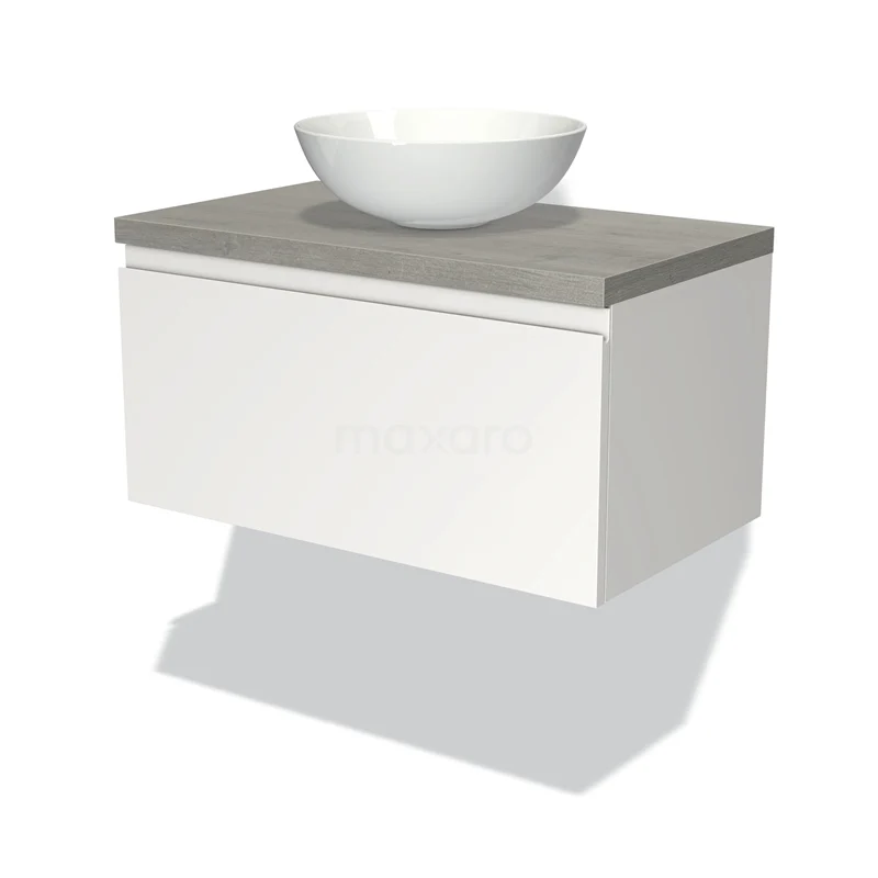 Modulo Plato Badmöbel mit Aufsatzwaschbecken | 80 cm Matt Weiß Grifflos front Graue Eiche blatt 1 Schublade
