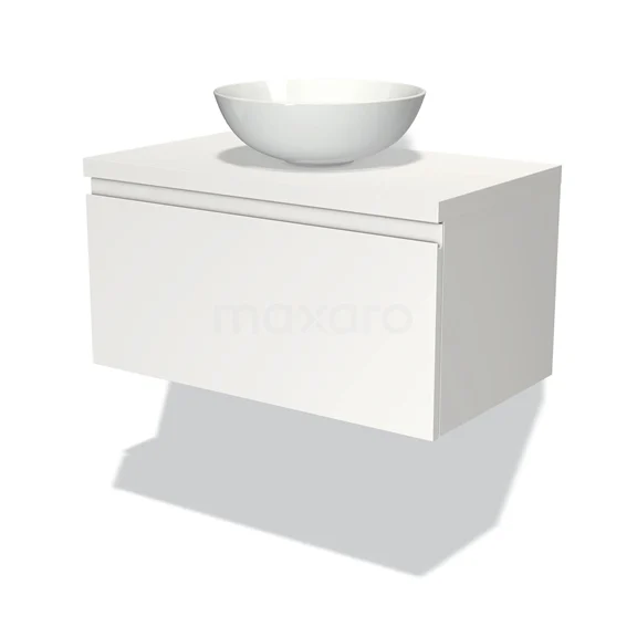 Modulo Plato Badmöbel mit Aufsatzwaschbecken | 80 cm Matt Weiß Grifflos front Hochglanz Weiß blatt 1 Schublade