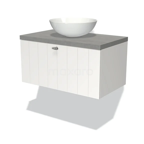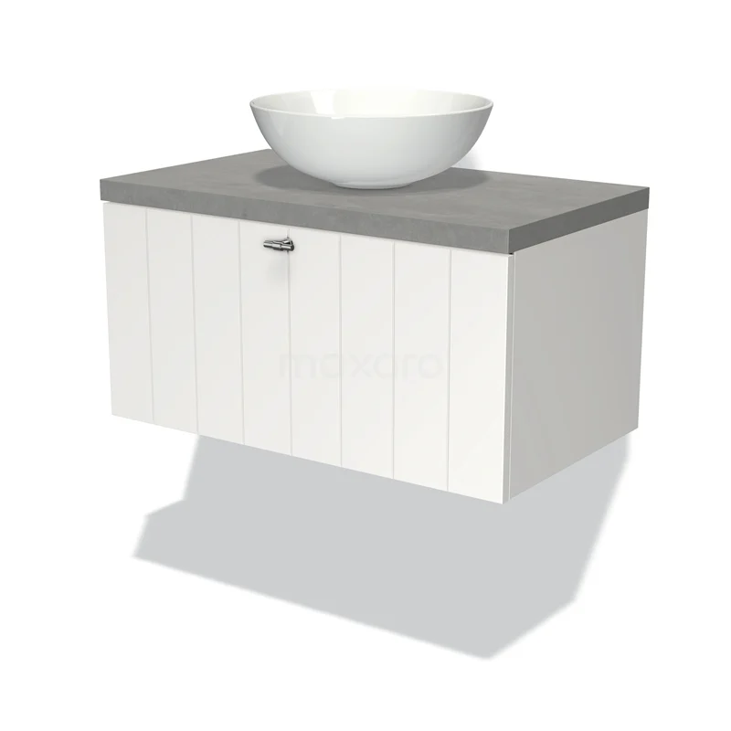 Modulo Plato Badmöbel mit Aufsatzwaschbecken | 80 cm Matt Weiß Lamelle front Hellgrauer Beton blatt 1 Schublade