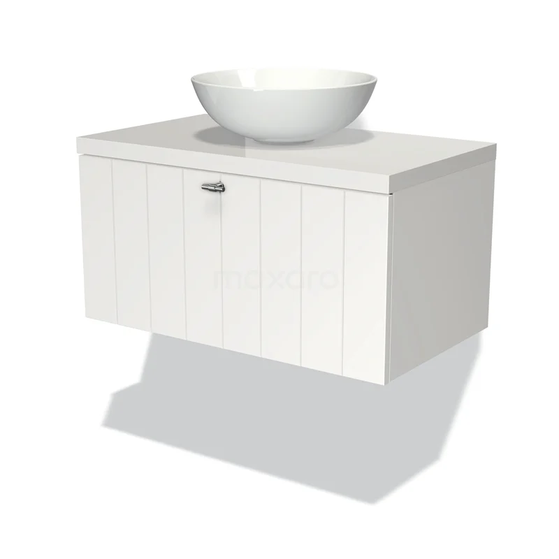 Modulo Plato Badmöbel mit Aufsatzwaschbecken | 80 cm Matt Weiß Lamelle front Hochglanz Weiß blatt 1 Schublade