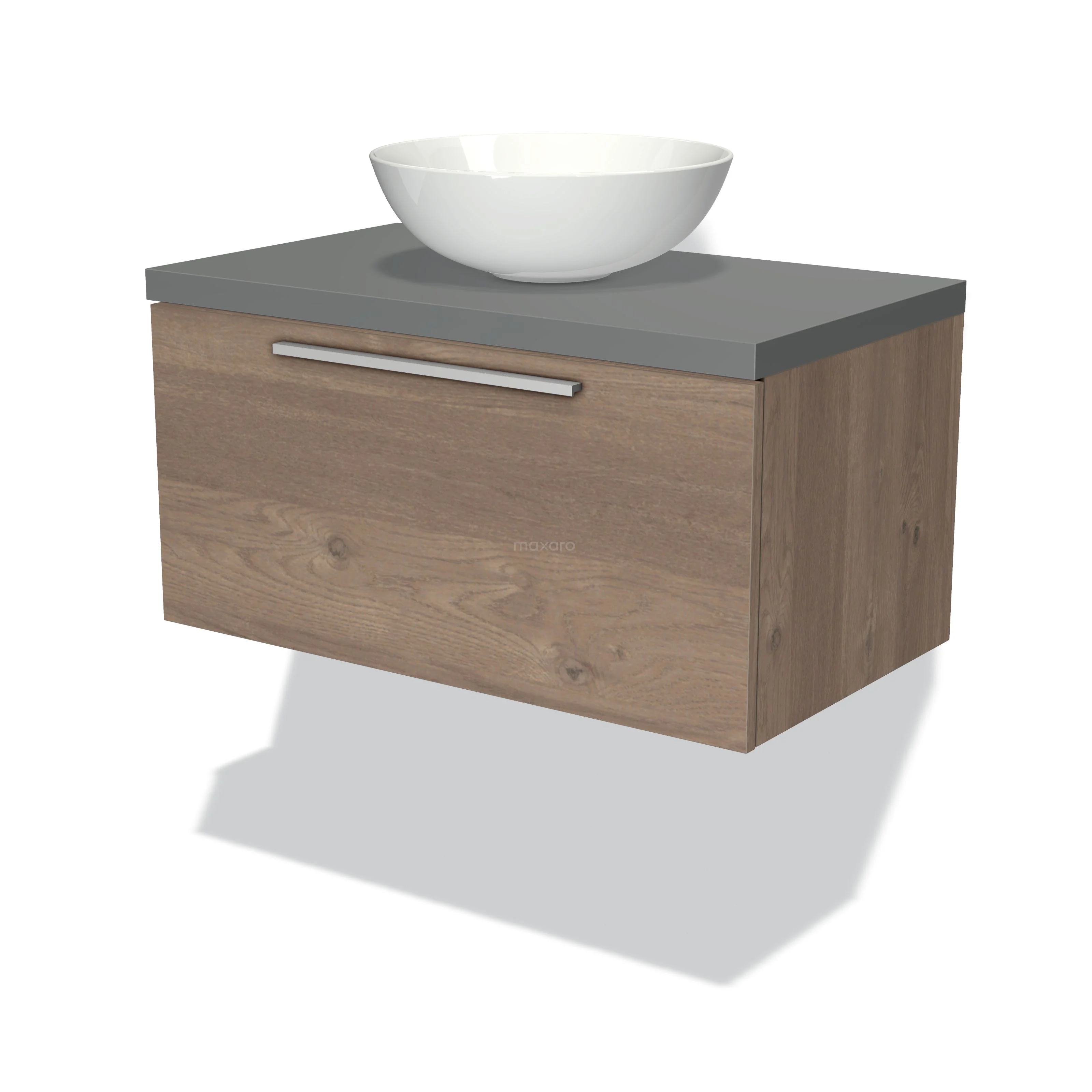 Modulo Plato Badmöbel mit Aufsatzwaschbecken | 80 cm Mittelbraune Eiche Flach front Mittelgrau blatt 1 Schublade