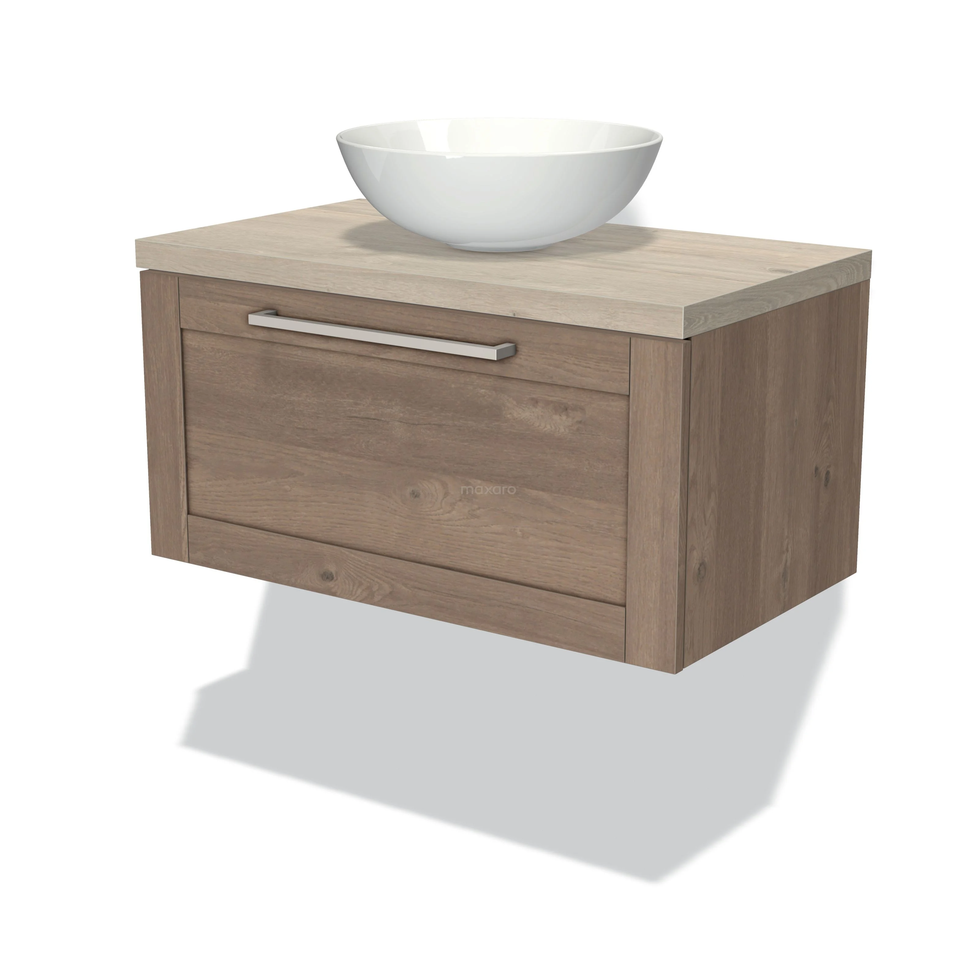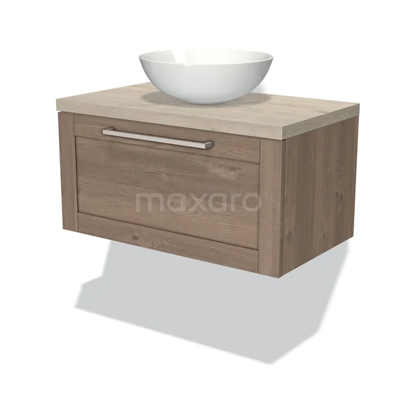 Modulo Plato Badmöbel mit Aufsatzwaschbecken | 80 cm Mittelbraune Eiche Rahmen front Hellgraue Eiche blatt 1 Schublade