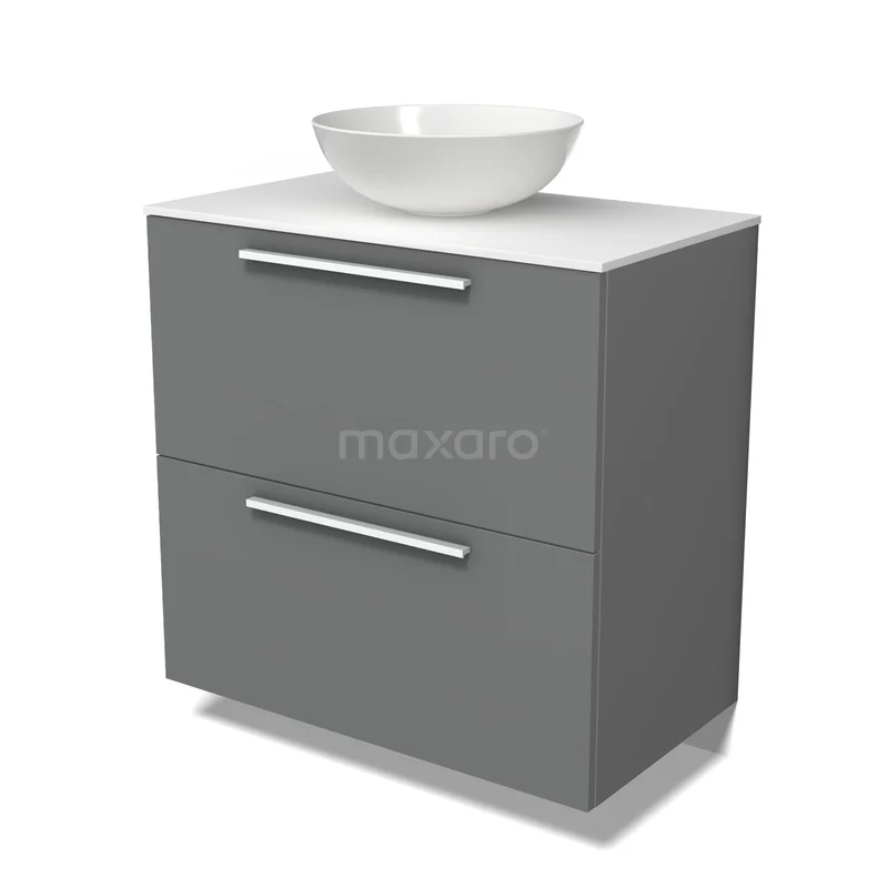Modulo Plato Badmöbel mit Aufsatzwaschbecken | 80 cm Mittelgrau Flach front Solid Surface blatt 2 hohe Schubladen übereinanderliegend