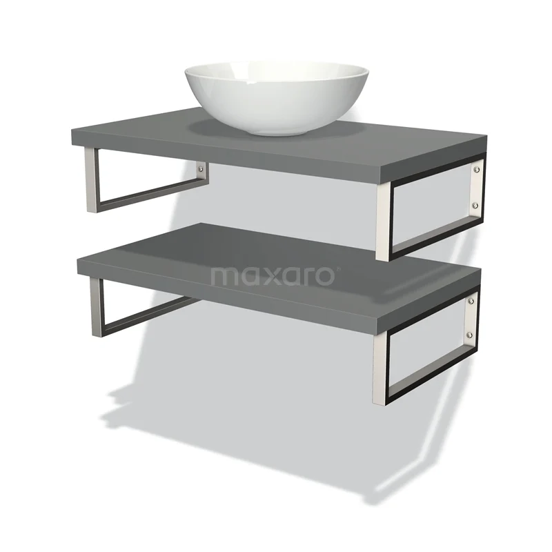 Modulo Plato Badmöbel mit Aufsatzwaschbecken | 80 cm Mittelgrau front Mittelgrau blatt 2 Waschtischplatten