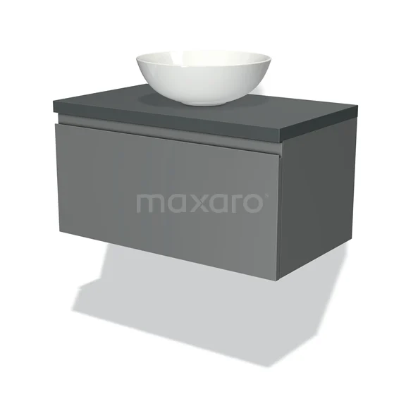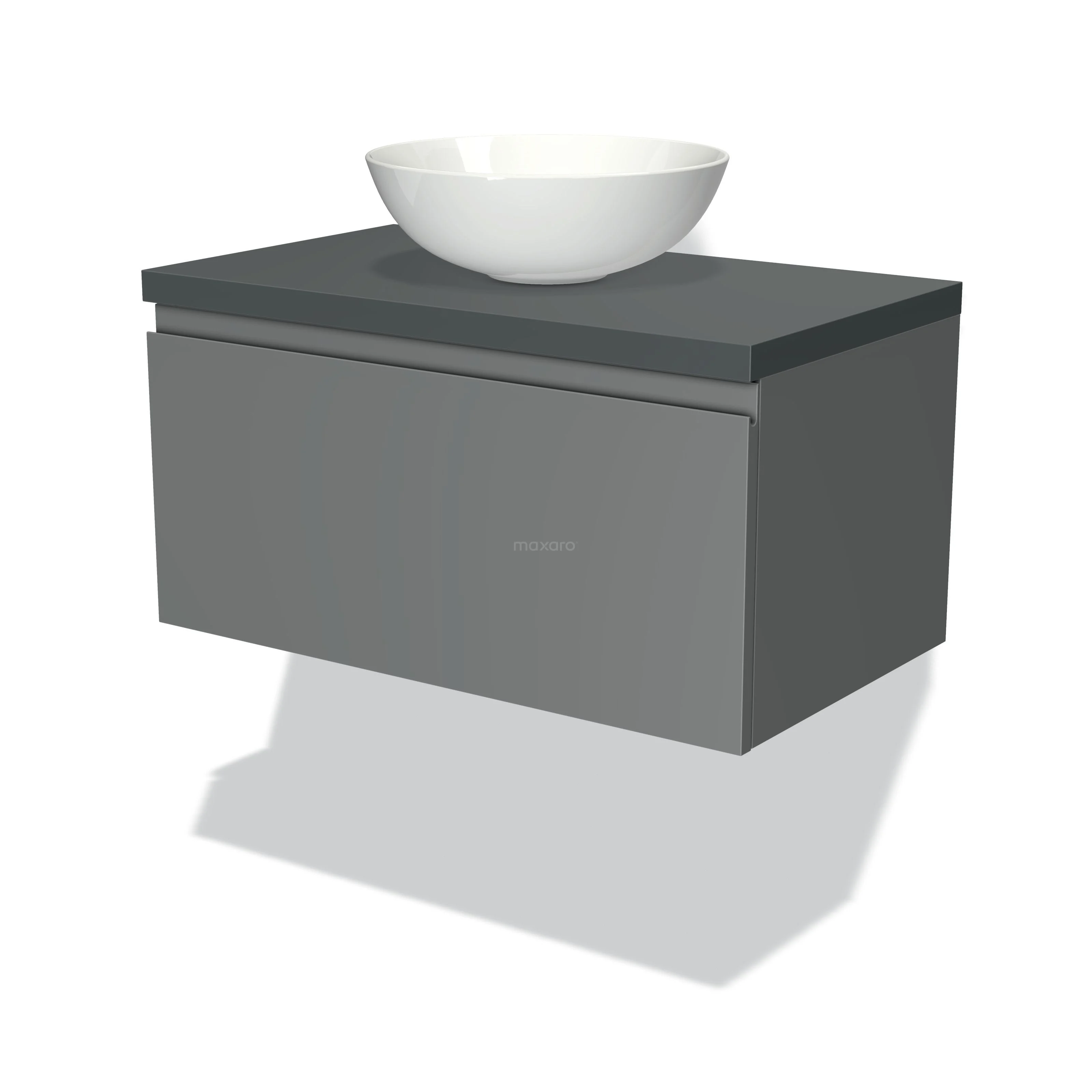 Modulo Plato Badmöbel mit Aufsatzwaschbecken | 80 cm Mittelgrau Grifflos front Dunkelgrau blatt 1 Schublade