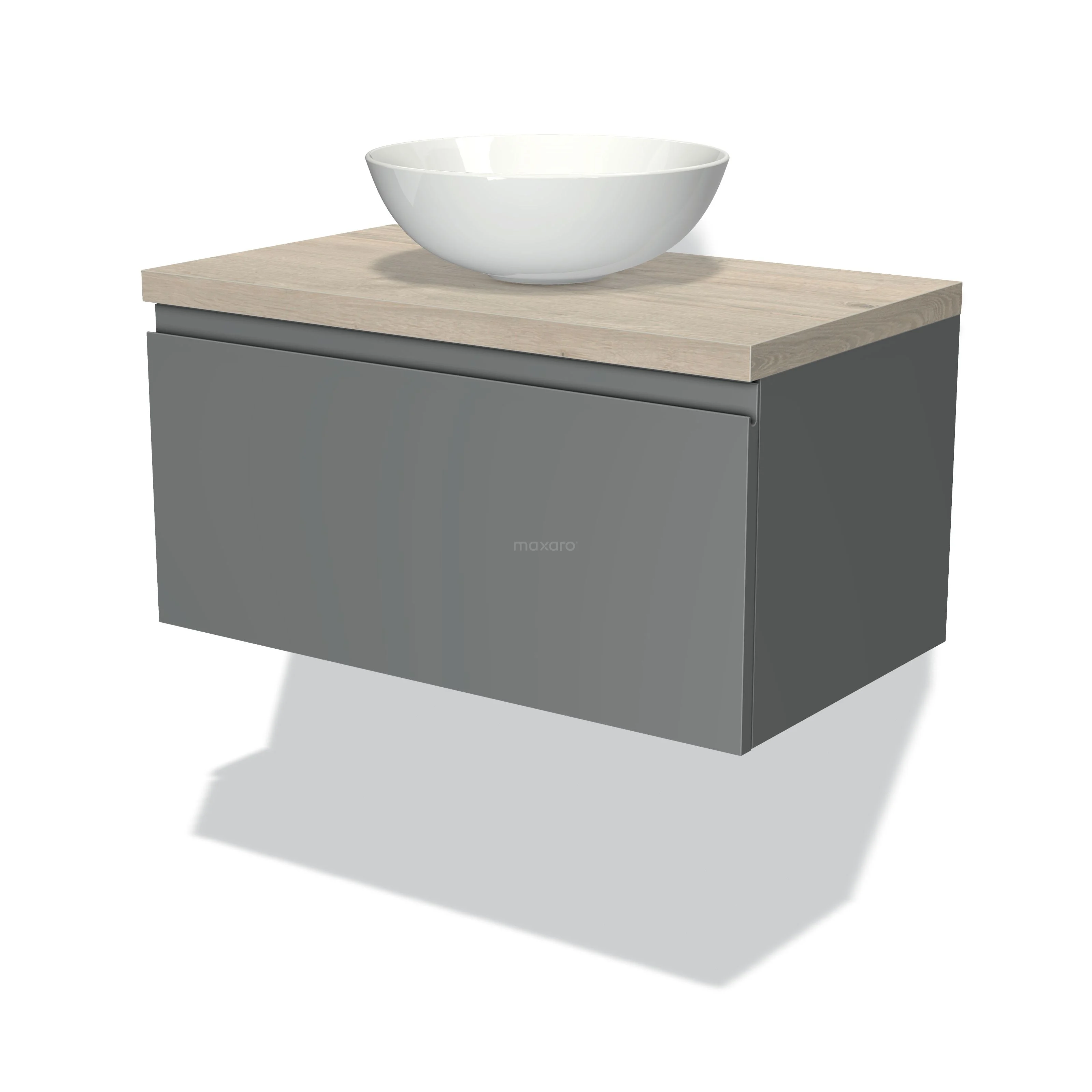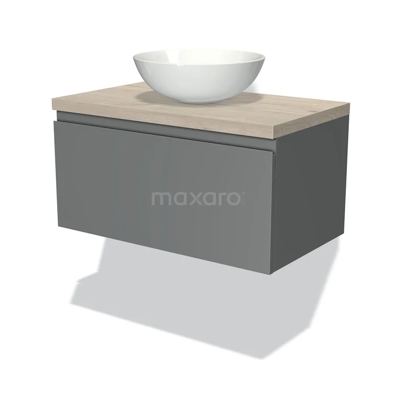 Modulo Plato Badmöbel mit Aufsatzwaschbecken | 80 cm Mittelgrau Grifflos front Hellgraue Eiche blatt 1 Schublade