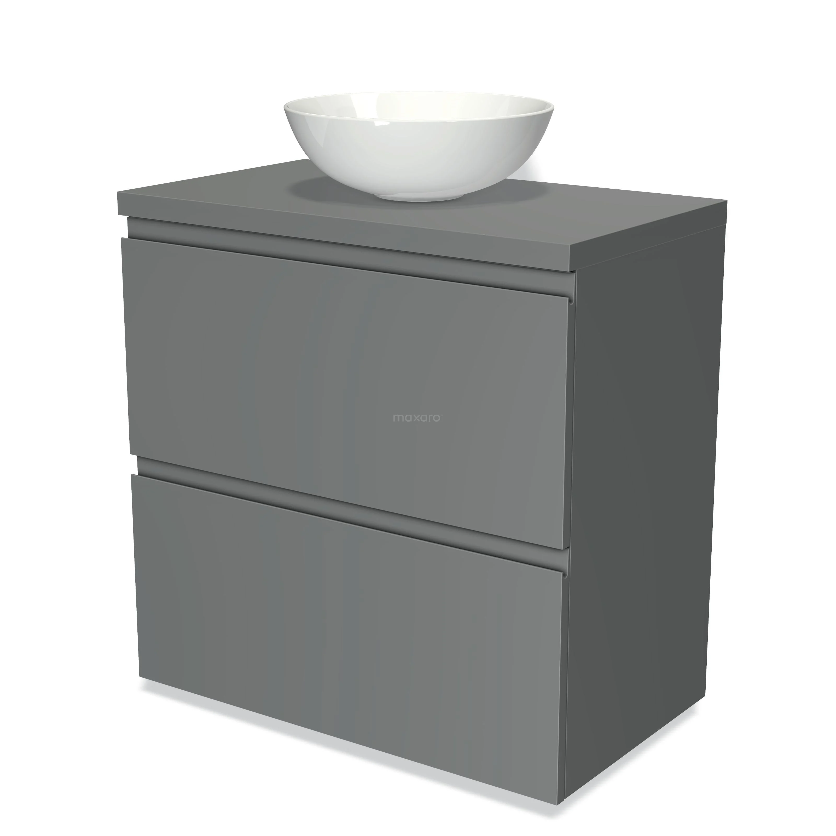 Modulo Plato Badmöbel mit Aufsatzwaschbecken | 80 cm Mittelgrau Grifflos front Mittelgrau blatt 2 hohe Schubladen übereinanderliegend