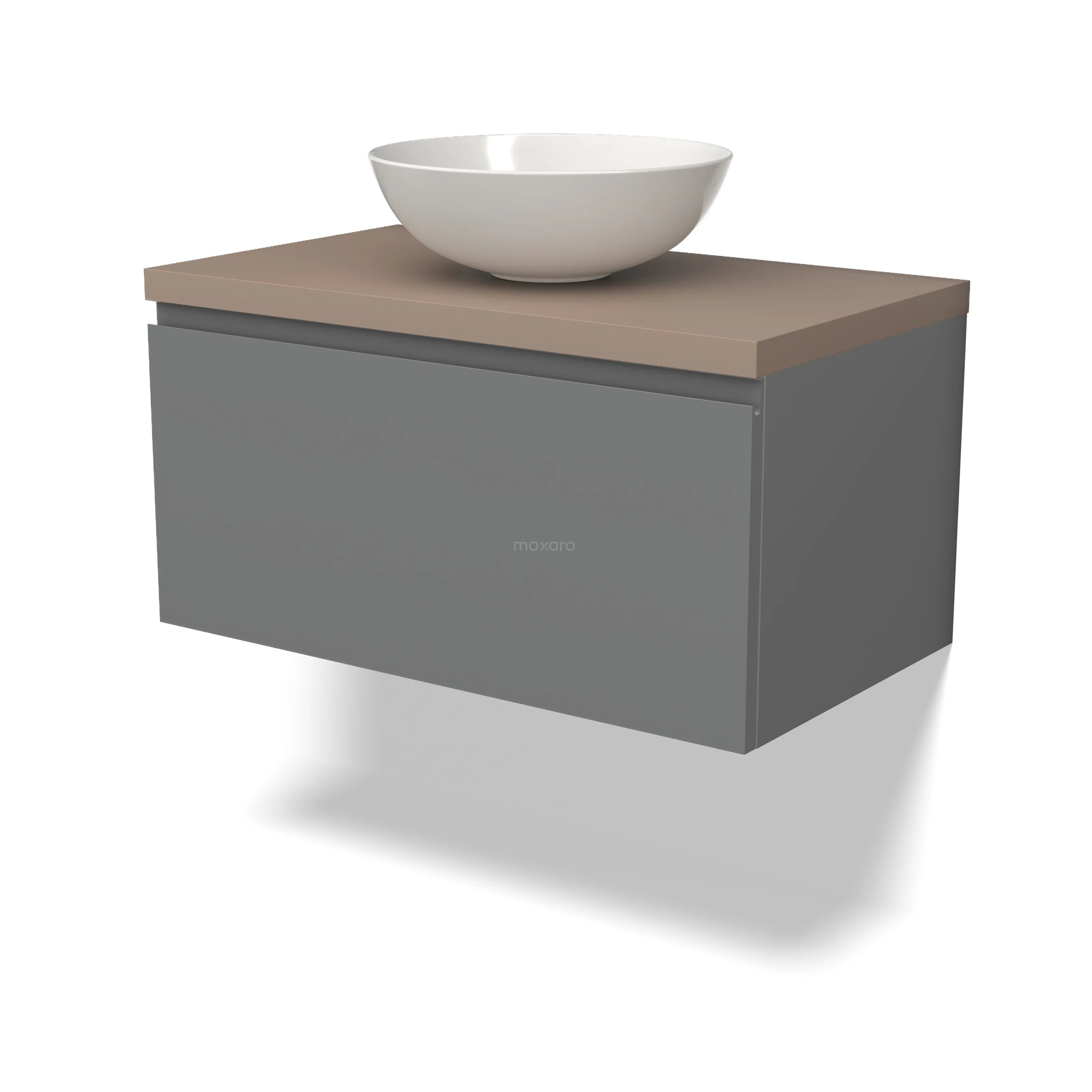 Modulo Plato Badmöbel mit Aufsatzwaschbecken | 80 cm Mittelgrau Grifflos front Taupe blatt 1 Schublade