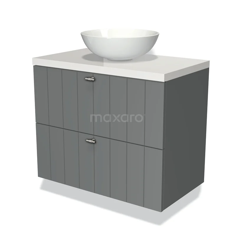 Modulo Plato Badmöbel mit Aufsatzwaschbecken | 80 cm Mittelgrau Lamelle front Hochglanz Weiß blatt 2 übereinanderliegende Schubladen