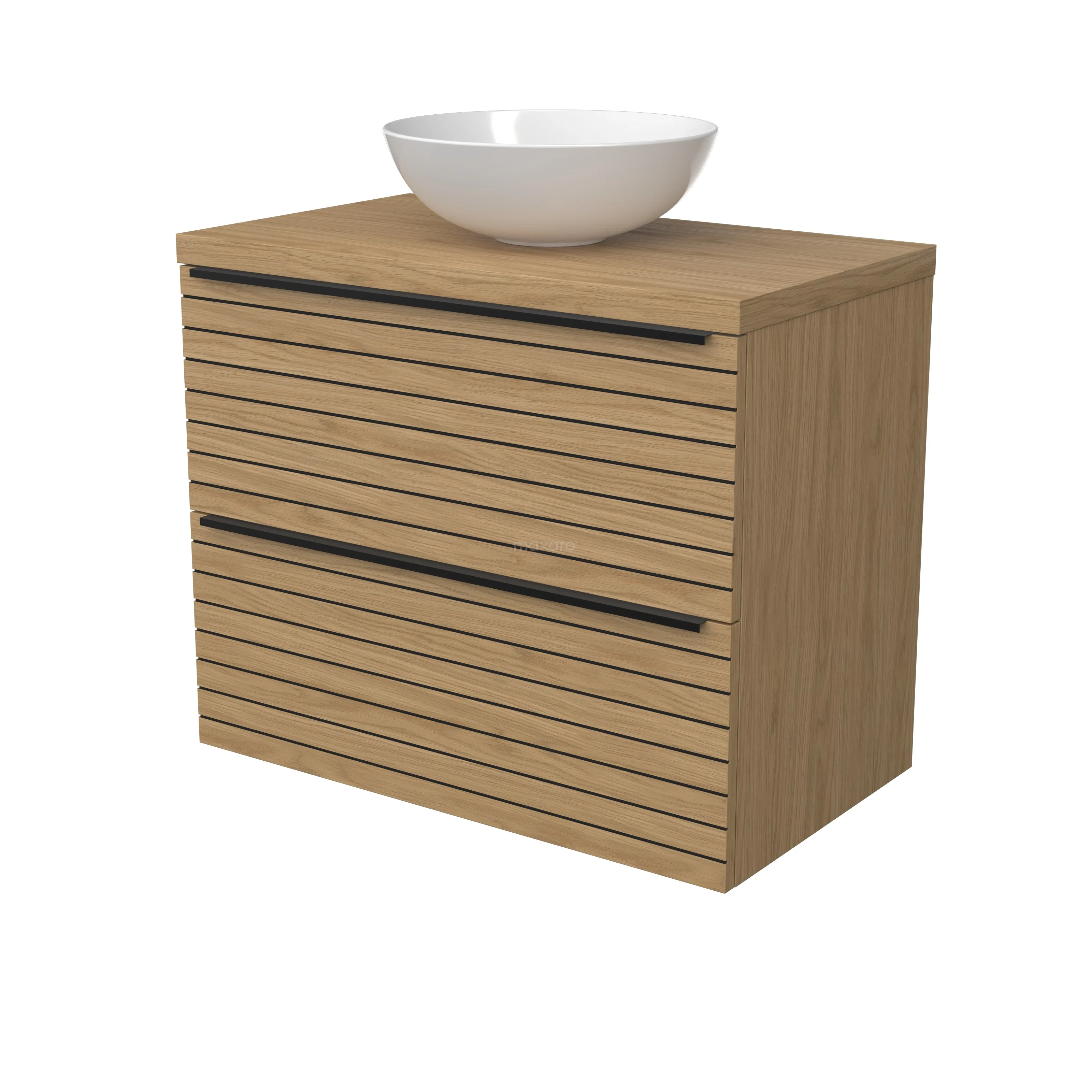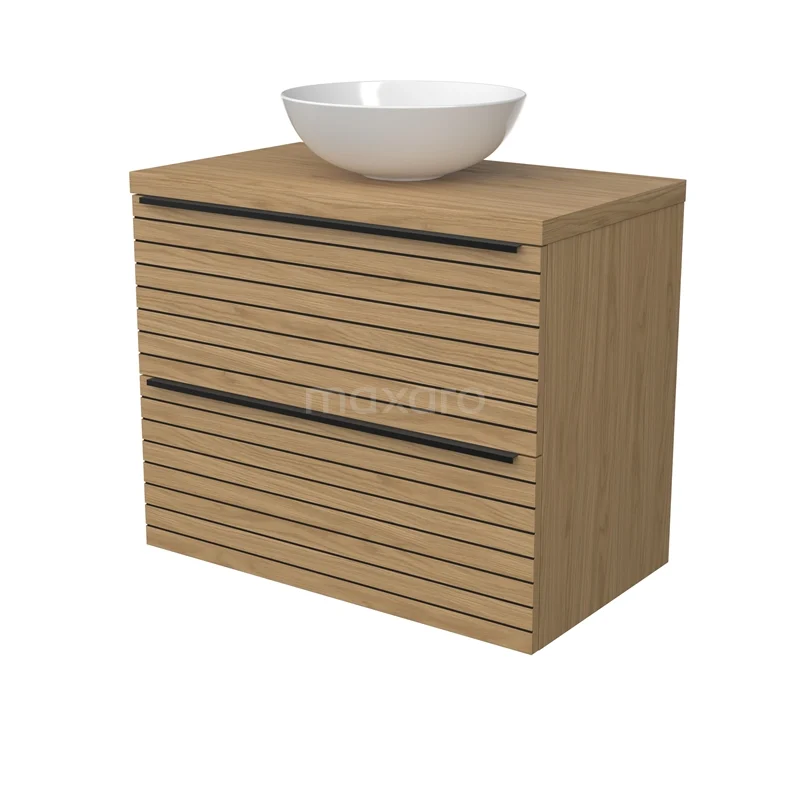 Modulo Plato Badmöbel mit Aufsatzwaschbecken | 80 cm Natürliches Furnier Streifen front Natürliches Furnier blatt 2 übereinanderliegende Schubladen