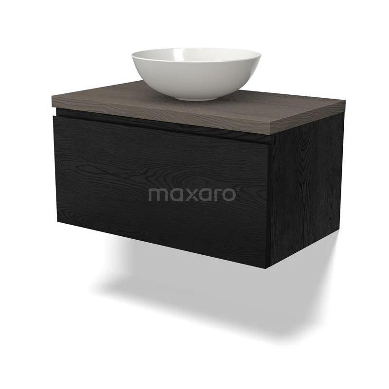 Modulo Plato Badmöbel mit Aufsatzwaschbecken | 80 cm Schwarze Eiche Grifflos front Dunkelbraune Eiche blatt 1 Schublade