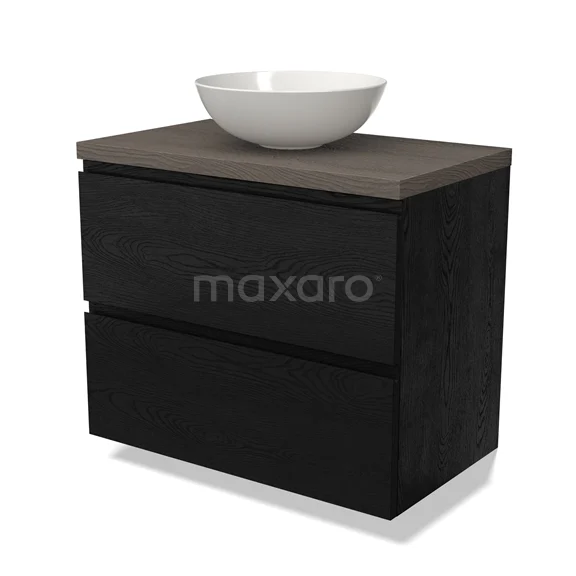 Modulo Plato Badmöbel mit Aufsatzwaschbecken | 80 cm Schwarze Eiche Grifflos front Dunkelbraune Eiche blatt 2 übereinanderliegende Schubladen