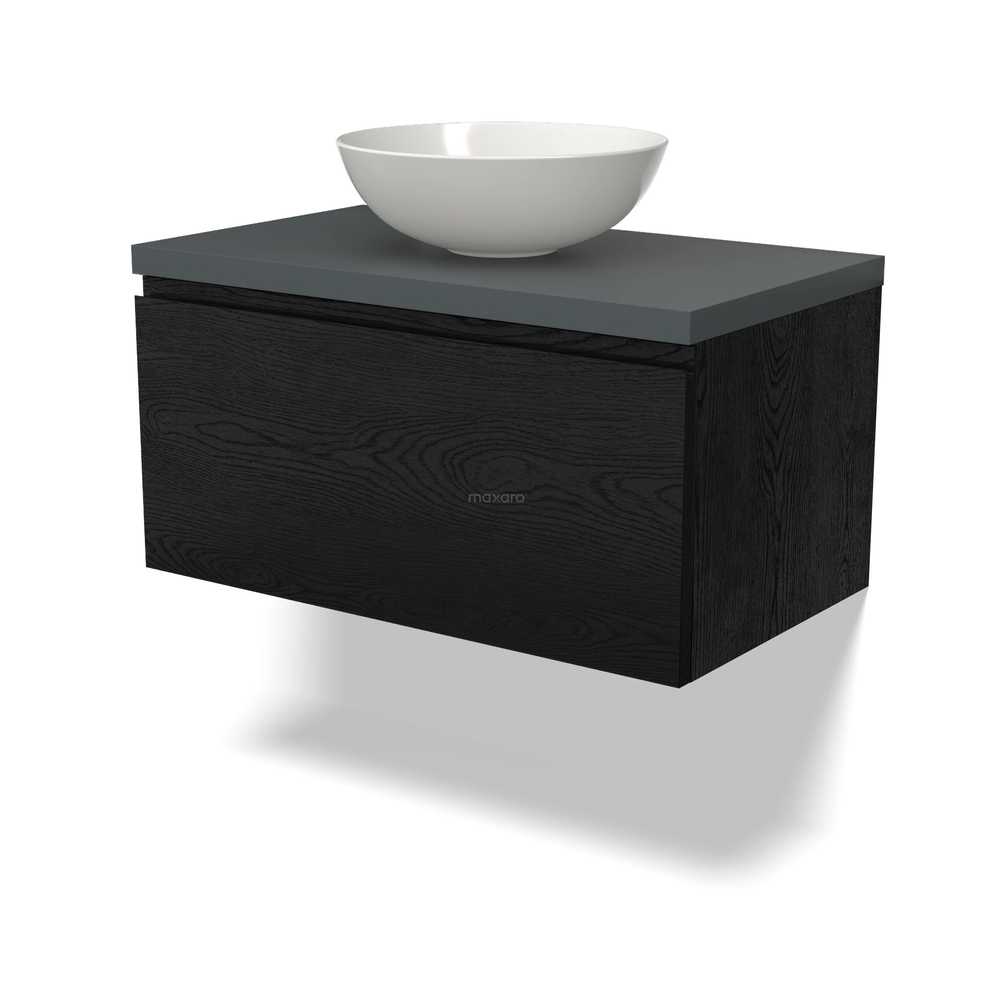 Modulo Plato Badmöbel mit Aufsatzwaschbecken | 80 cm Schwarze Eiche Grifflos front Dunkelgrau blatt 1 Schublade