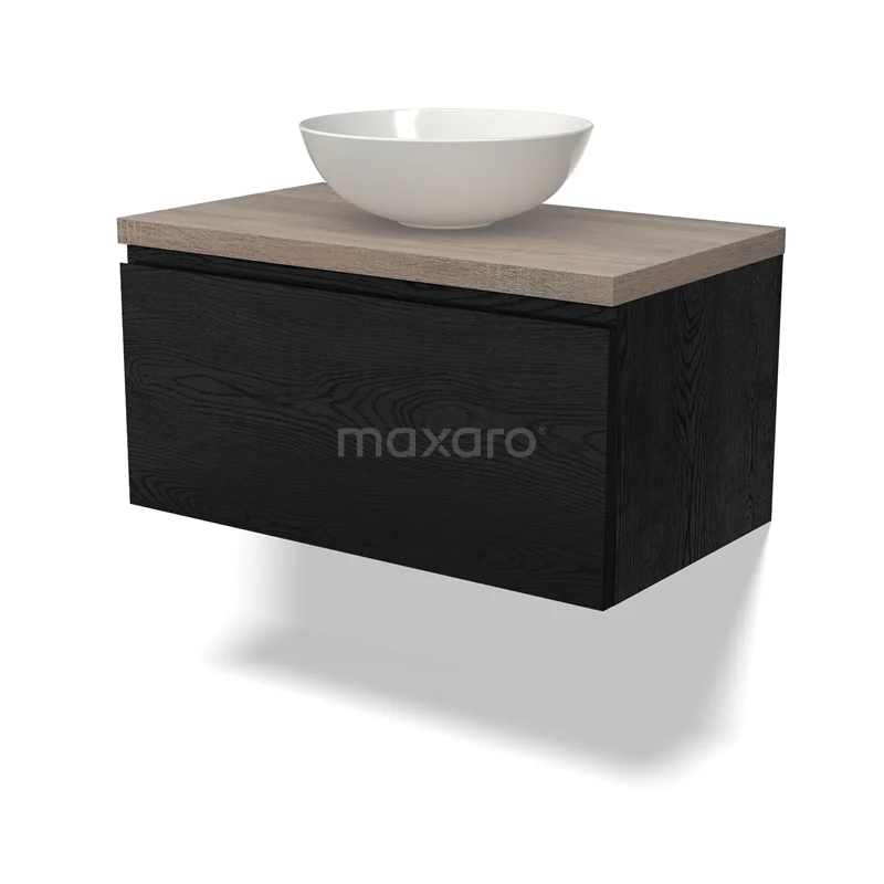 Modulo Plato Badmöbel mit Aufsatzwaschbecken | 80 cm Schwarze Eiche Grifflos front Eiche blatt 1 Schublade