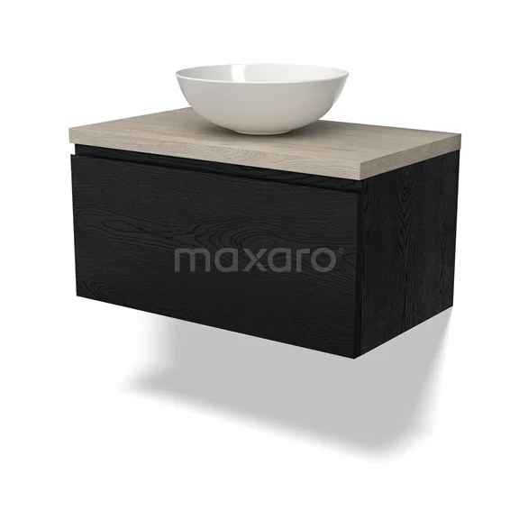 Modulo Plato Badmöbel mit Aufsatzwaschbecken | 80 cm Schwarze Eiche Grifflos front Hellgraue Eiche blatt 1 Schublade