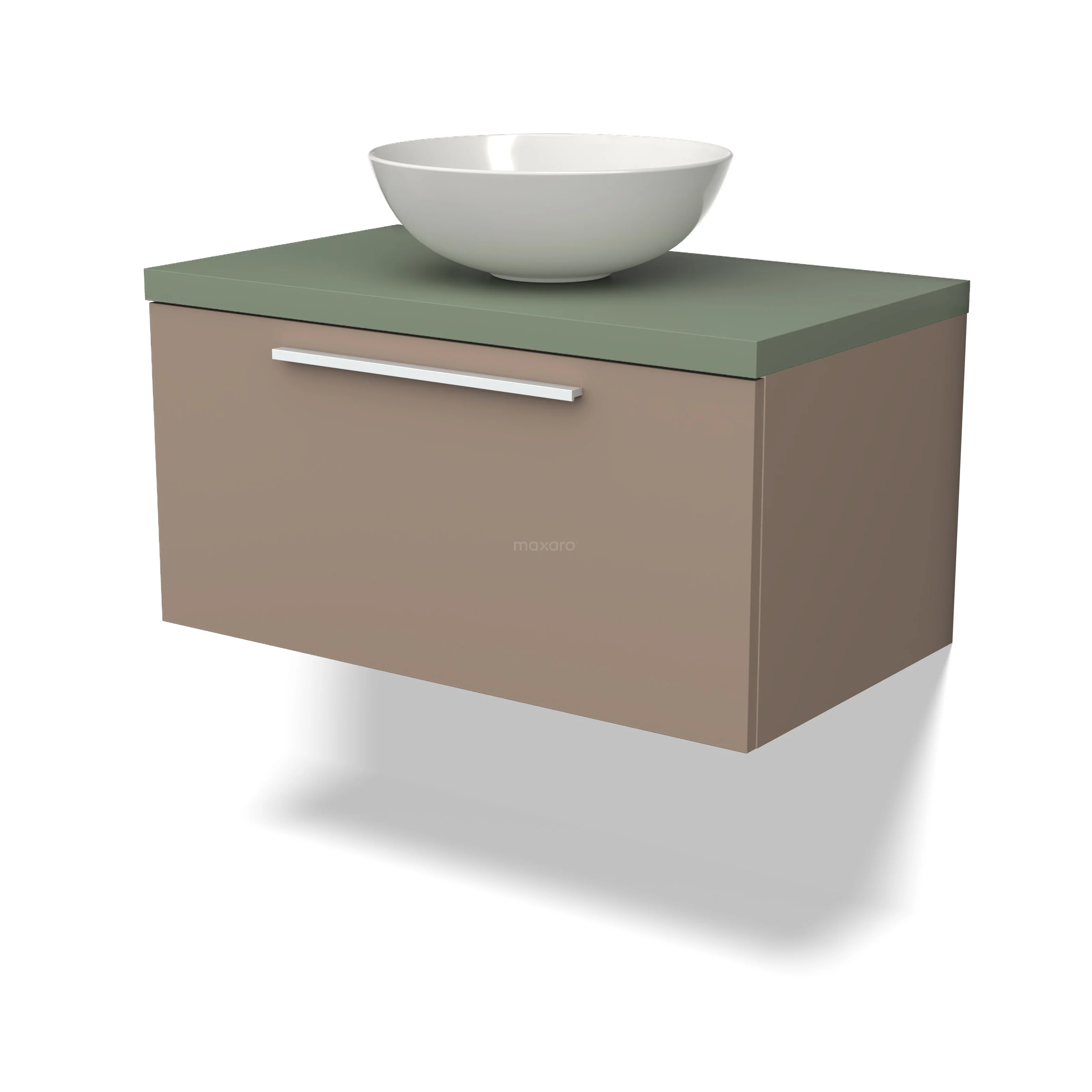 Modulo Plato Badmöbel mit Aufsatzwaschbecken | 80 cm Taupe Flach front Salbeigrün blatt 1 Schublade