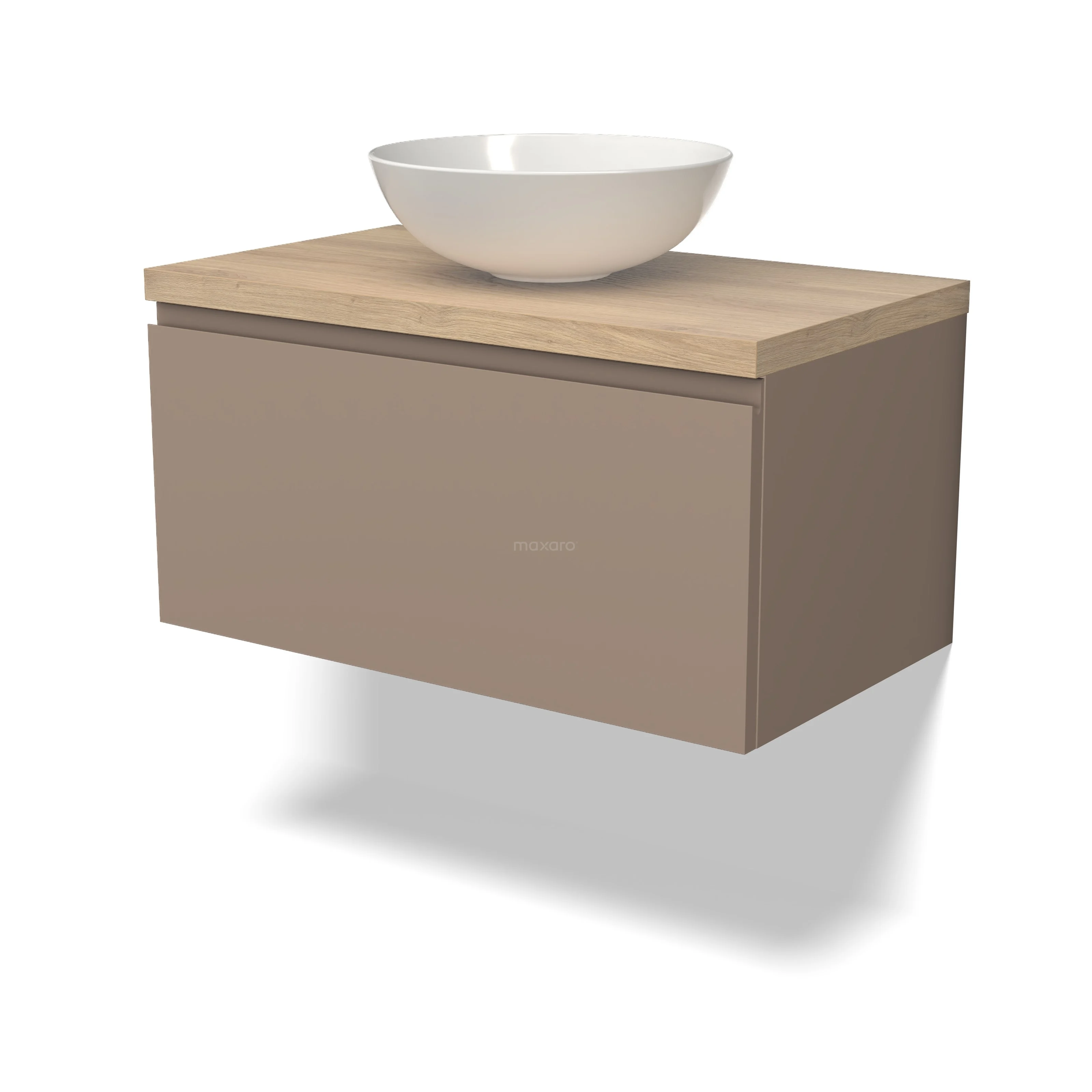 Modulo Plato Badmöbel mit Aufsatzwaschbecken | 80 cm Taupe Grifflos front Hellbraune Eiche blatt 1 Schublade