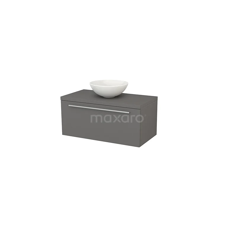 Modulo+ Plato Badmöbel mit Aufsatzwaschbecken | 90 cm Basalt Flach front Basalt blatt 1 Schublade