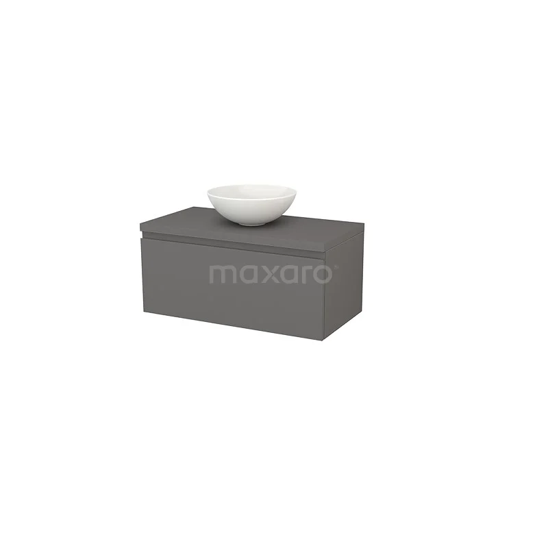 Modulo+ Plato Badmöbel mit Aufsatzwaschbecken | 90 cm Basalt Grifflos front Basalt blatt 1 Schublade