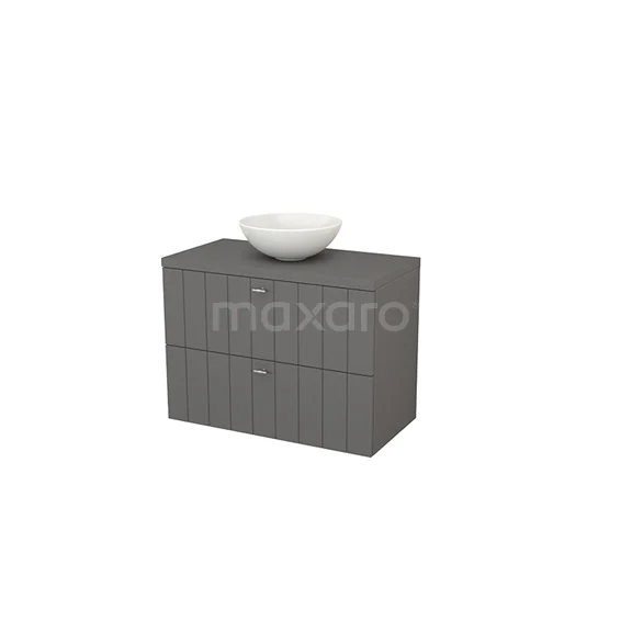 Modulo+ Plato Badmöbel mit Aufsatzwaschbecken | 90 cm Basalt Lamelle front Basalt blatt 2 übereinanderliegende Schubladen