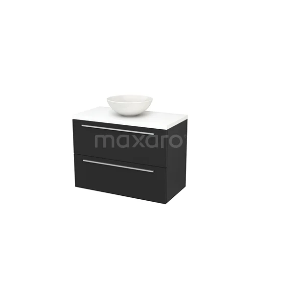 Modulo+ Plato Badmöbel mit Aufsatzwaschbecken | 90 cm Matt Weiß Flach front Matt Weiß blatt 2 übereinanderliegende Schubladen