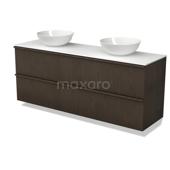 Modulo Plato Plus Badmöbel mit Aufsatzwaschbecken | 160 cm Espresso Eiche Riffel front Solid Surface blatt 4 Schubladen