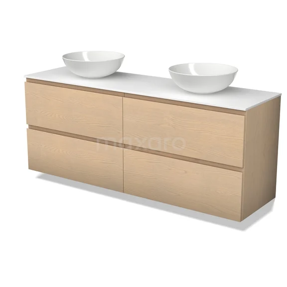 Modulo Plato Plus Badmöbel mit Aufsatzwaschbecken | 160 cm Natürliche Eiche Grifflos front Solid Surface blatt 4 Schubladen
