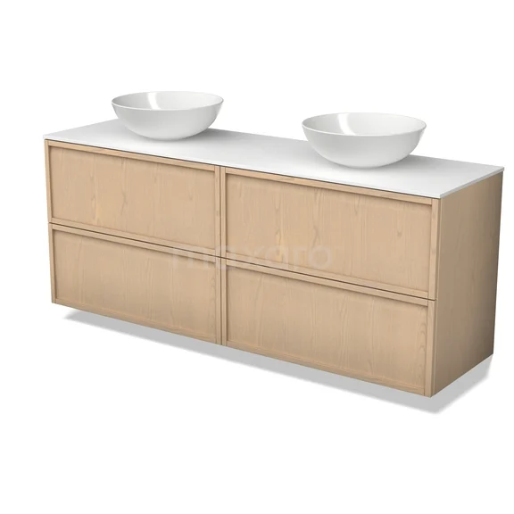 Modulo Plato Plus Badmöbel mit Aufsatzwaschbecken | 160 cm Natürliche Eiche Rahmen front Solid Surface blatt 4 Schubladen