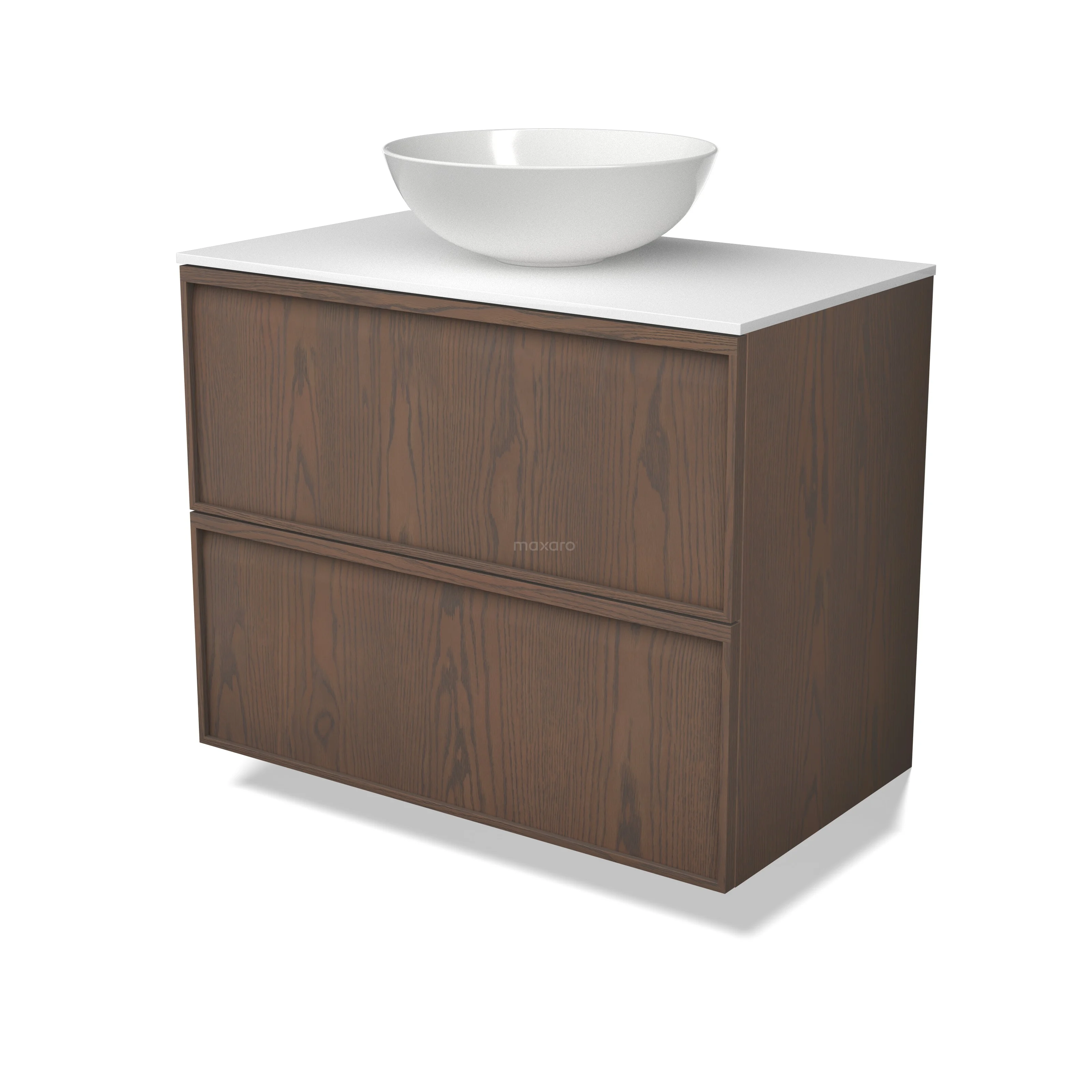 Modulo Plato Plus Badmöbel mit Aufsatzwaschbecken | 80 cm Kakao-Eiche Liste front Solid Surface blatt 2 übereinanderliegende Schubladen