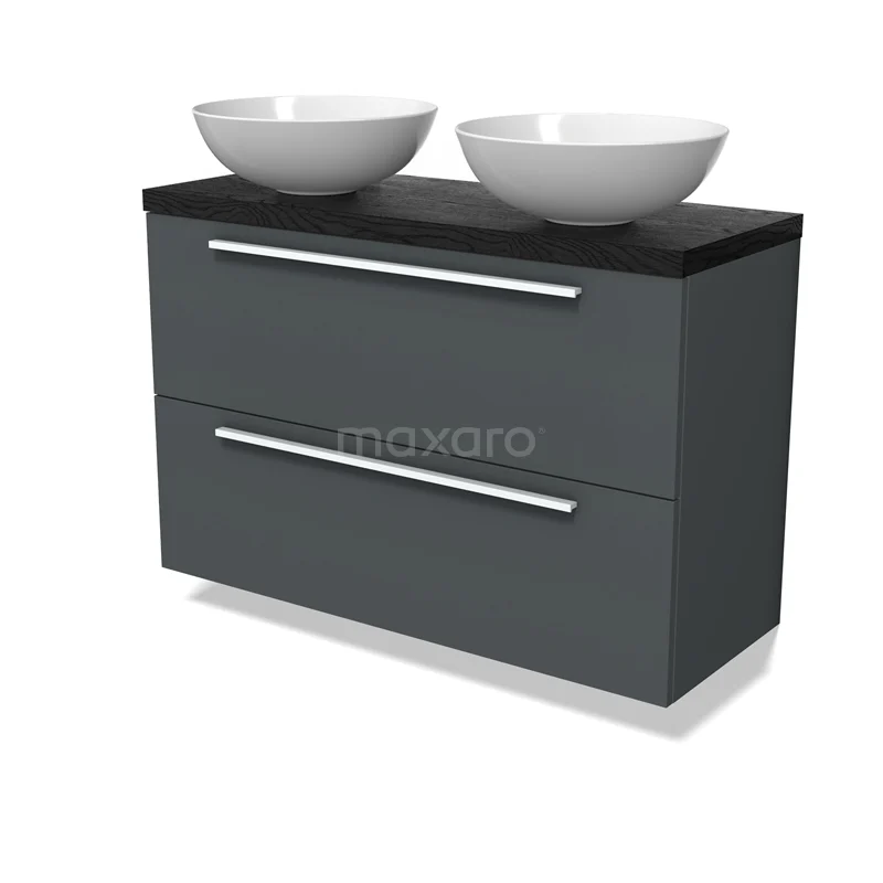 Modulo Plato Slim Badmöbel mit Aufsatzwaschbecken | 100 cm Dunkelgrau Flach front Schwarze Eiche blatt 2 übereinanderliegende Schubladen