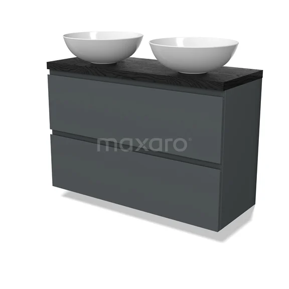 Modulo Plato Slim Badmöbel mit Aufsatzwaschbecken | 100 cm Dunkelgrau Grifflos front Schwarze Eiche blatt 2 übereinanderliegende Schubladen
